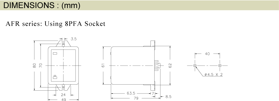 Prev Next Level Switch Level Switch AFR FLOATLESS RELAY Add to inquiry Inquiry list Description Wiring and timing diagrams Overall dimensions or other Download Suitable for any electrolytic fluid surface (NO VOLATILE FLUID) AC operating voltage Protection against interference from power surge Low electrodes AC voltage to prevent electrolysis for longer life expectance Low electrodes AC voltage to prevent electrolysis for longer life expectance AFS/AFR/A61F-G Catalogue