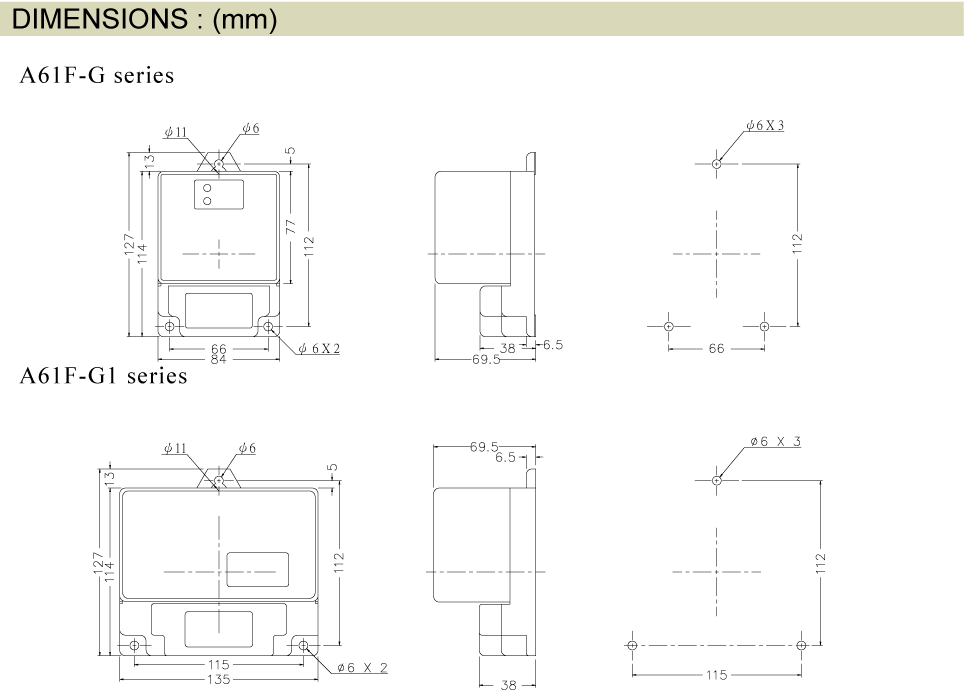 Note: "*" indicates applicable to A61F-G2 series only